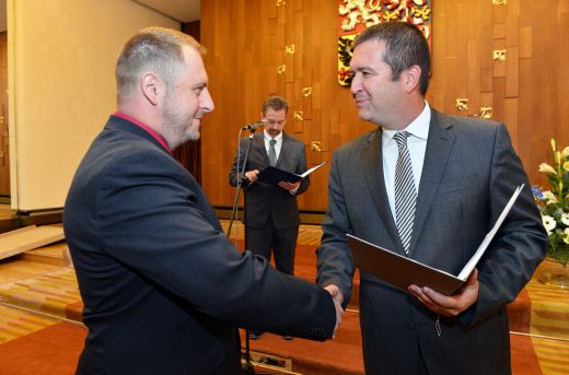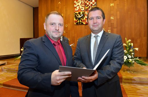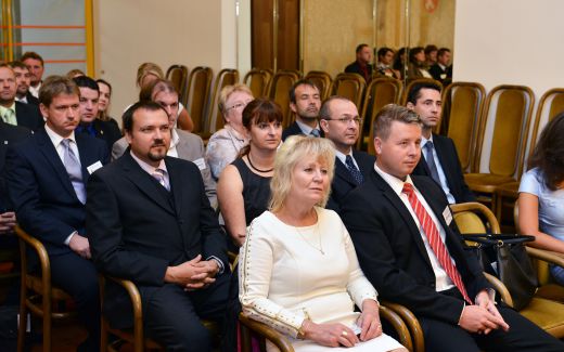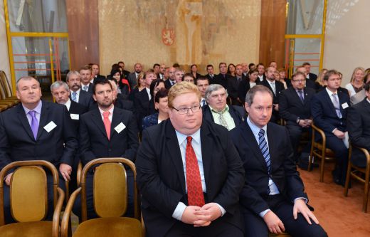 Slavnostní předání znaků a vlajek obcím předsedou Poslanecké sněmovny PČRp. Janem Hamáčkem 10.9.2015
